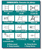 - Elementos de mando y de control: son los elementos que abren o cierran el circuito. En el eléctrico, es por ejemplo un interruptor, en el neumático e hidráulico se emplean válvulas, que permiten, dirigen o impiden la circulación del fluido por el circuito.